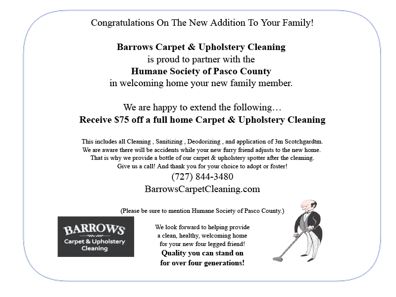 We would like to thank the following organizations for their generous advertising support. With their support, we make a difference for Pasco County’s homeless dogs and cats!